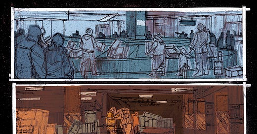 All of this works, because he understands where the reader will look, and doesn’t spend extra time on rendering every single panel.